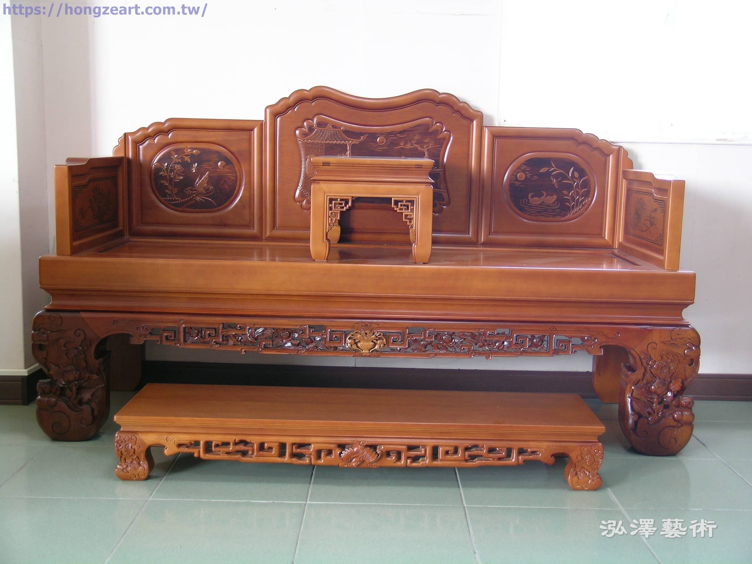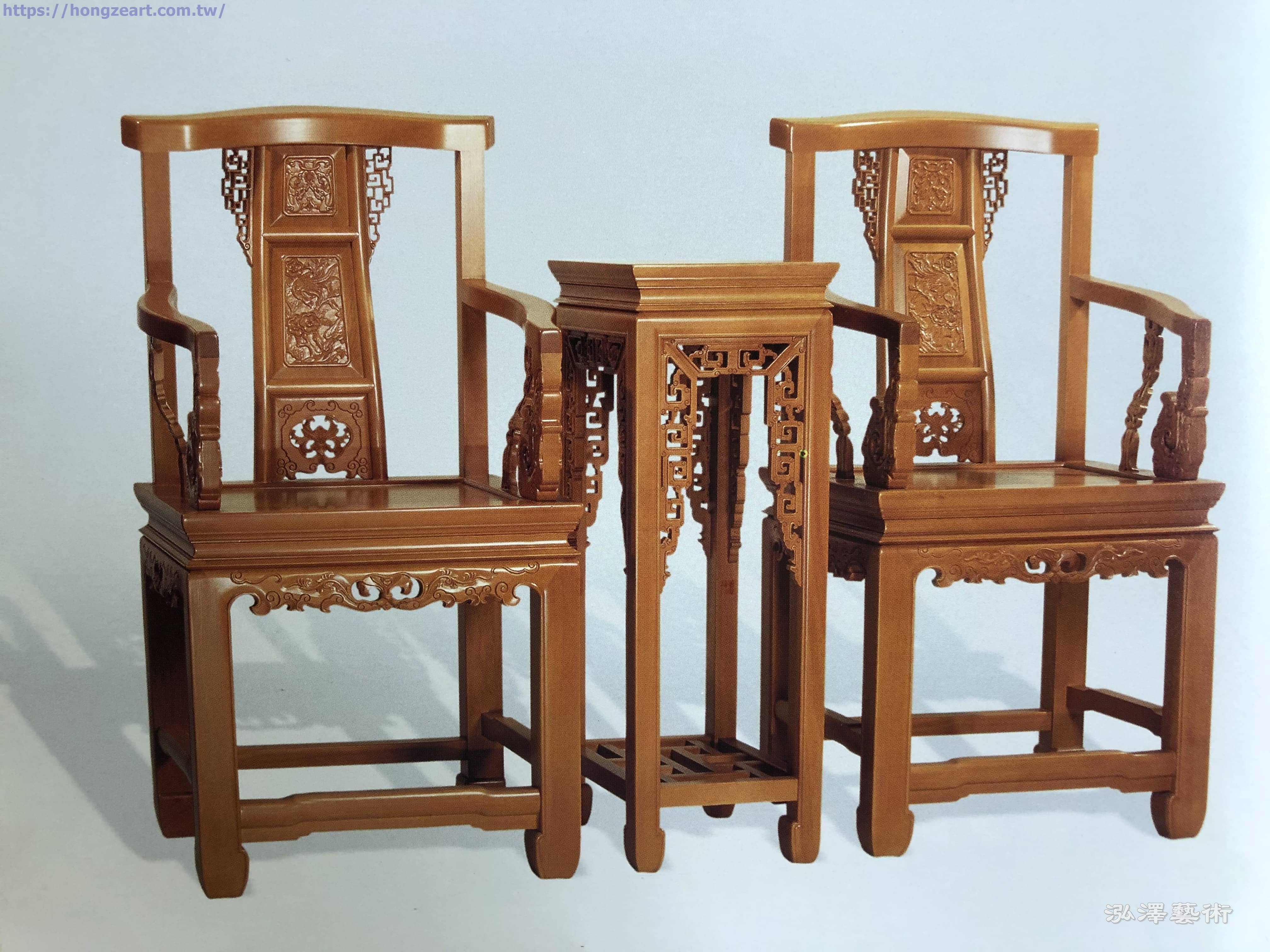 【簡述】 太師椅組是早期常民生活中具有代表性之椅具。通常一套是八張椅子、四張茶几,分列於廳堂的兩邊,大都陳設於祠堂、大廳或客廳之處。現則陳設於現代生活空間,更顯得中庸合宜、穩重大方,更具「本土文化之美」的實際應用。