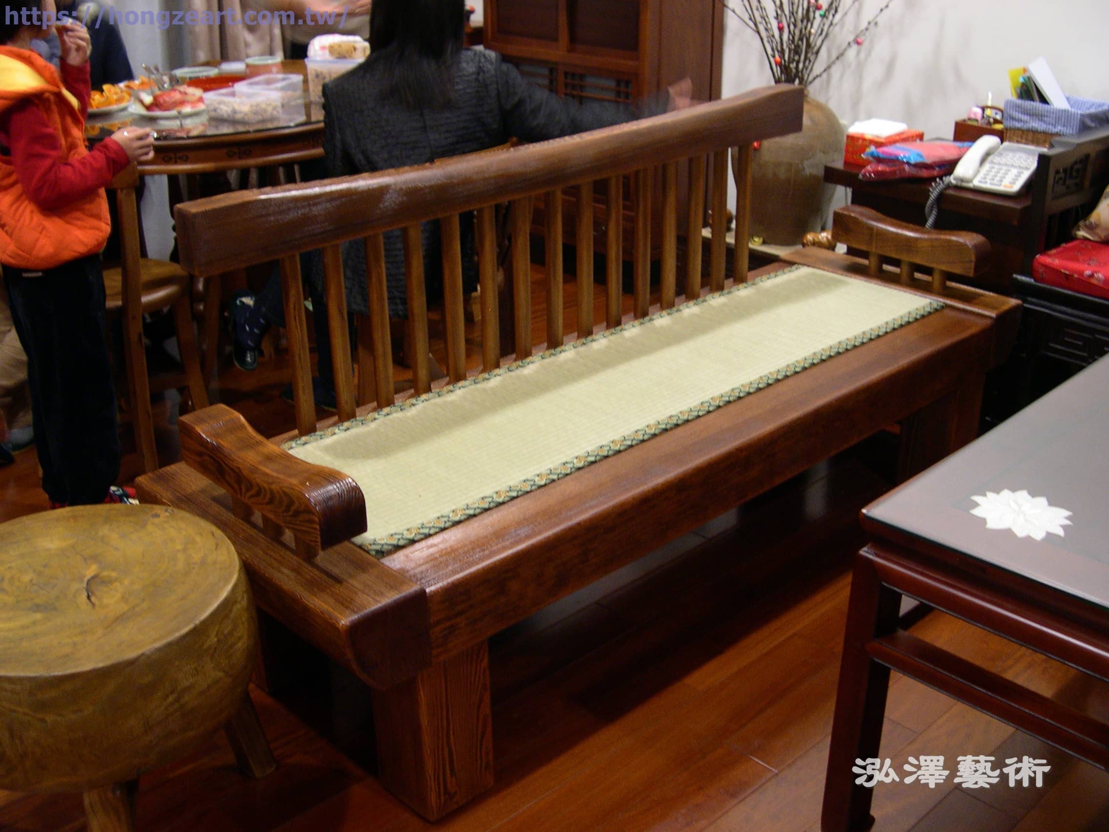 【簡述】 本作品追求符合現代人生活的設計;有客人來訪時,端坐其上不失莊重之感;在閒睱時可以隨意自在地坐、臥、躺,滿足了現代人對家具多功能的需求。家具表面的特殊木紋處理,更表現出木頭特有的觸感與自然的美感。 此外,採用「出頭榫」之榫卯結合樣式製作,隱含著「只要努力,就能出頭天」的意涵。右側不作扶手的設計,營造出開闊不受拘束的空間感,即使在狹小環境中,仍能規劃出一個怡然自得的空間。 在設計中運用渾厚的原木呈現作品厚重的質感,藉由簡樸自然的造型及對榫卯的細膩處理,可以感受到作者在極簡風格中對傳統技藝與文化內含的執著。