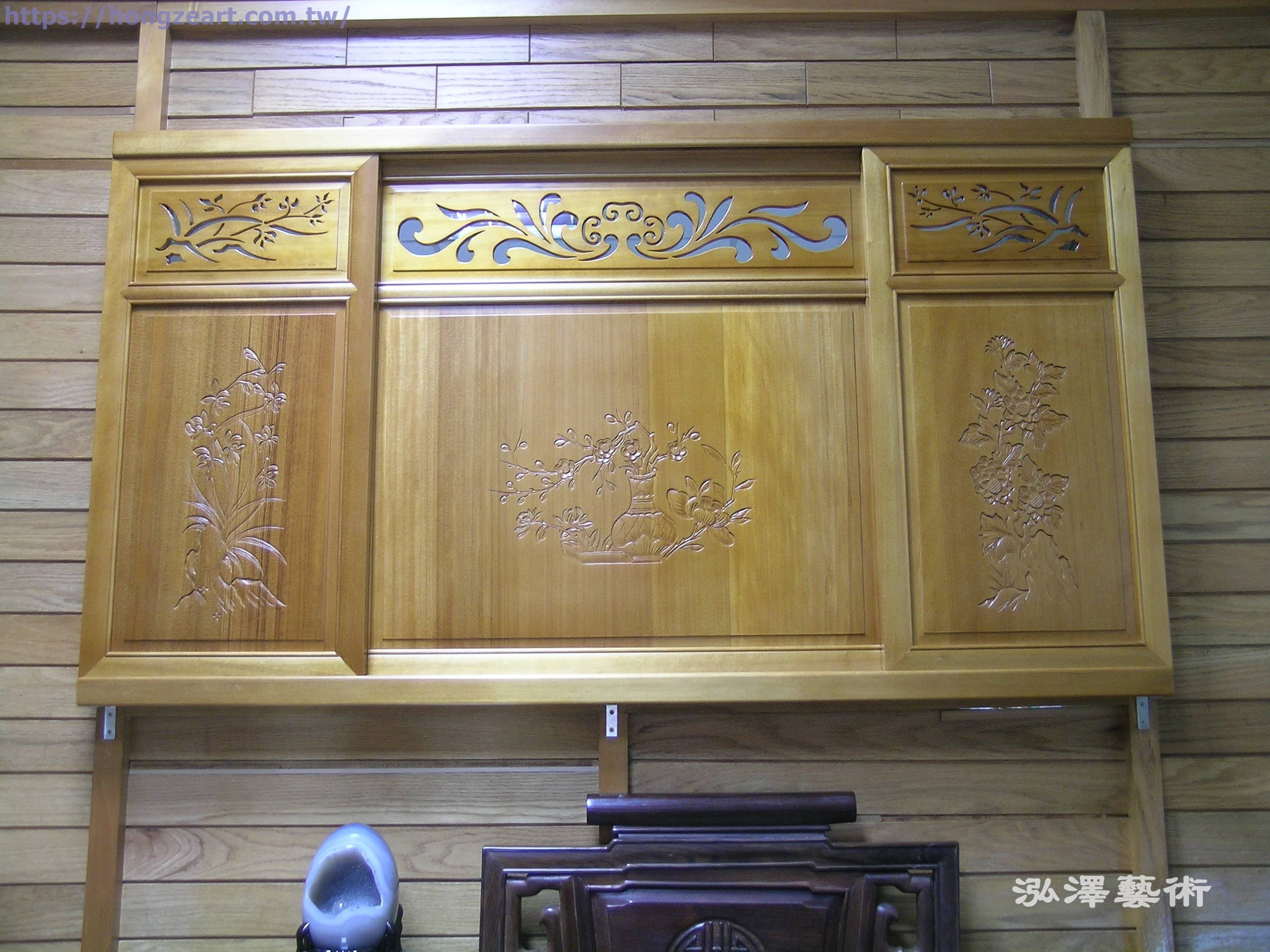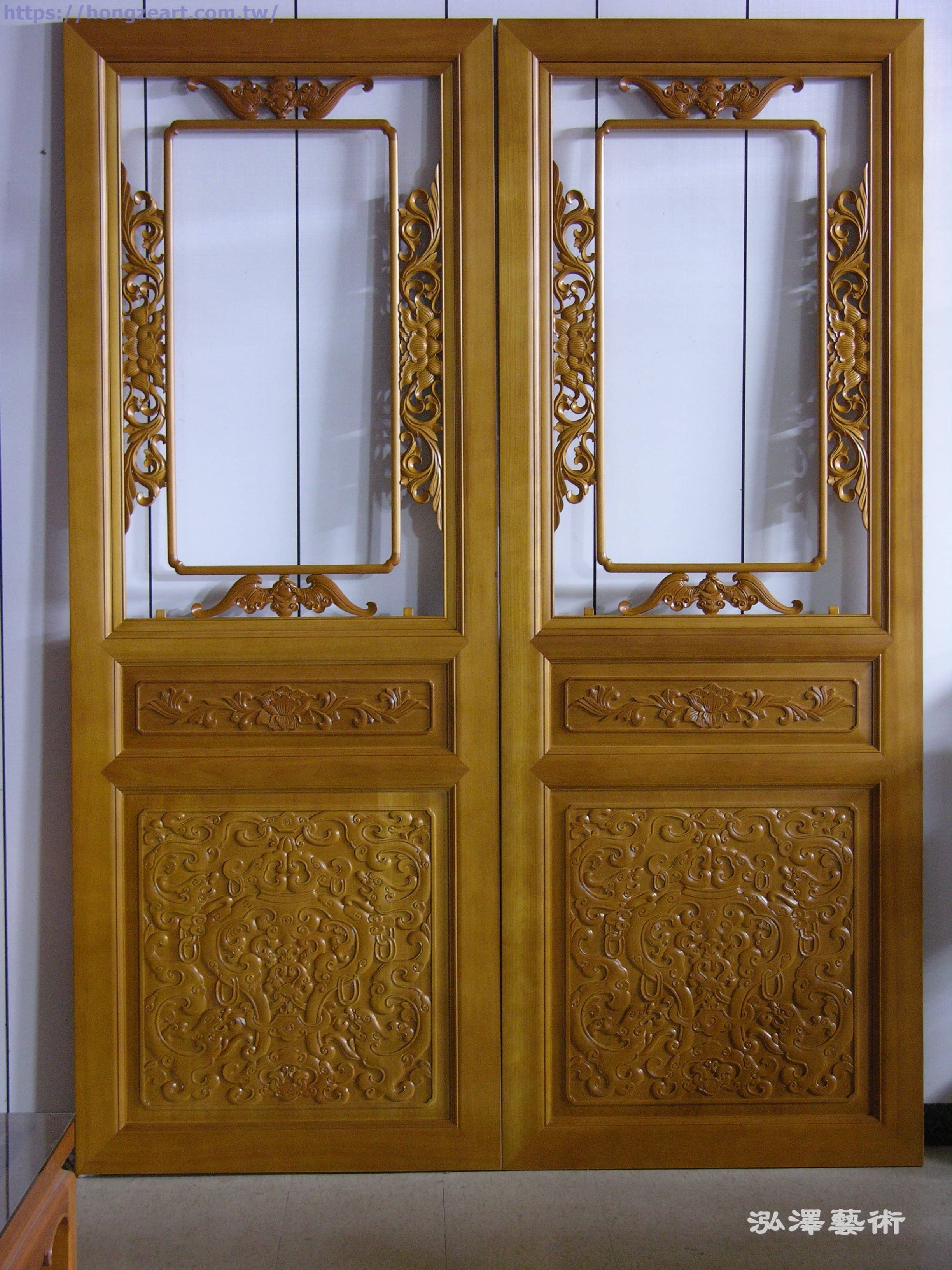 【簡述】 此門置於佛堂、客廳,雕刻牡丹,蓮花,蝙蝠,皆為吉祥圖案,喻福錄富貴平安。