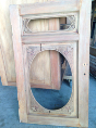 【修復工程】 1.門片裂縫補平 2.蓋板缺失損壞換新補齊 3.直柱龜裂補平 4.玻璃彩繪畫換新 5.下面門片丁雙換新