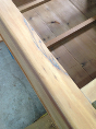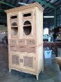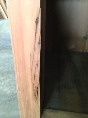 【修復前狀況】 1.門片裂縫 2.衣櫥最上面蓋板缺失損壞 3.衣櫥直柱龜裂 4.玻璃彩繪畫破裂 5.下面門片丁雙缺失