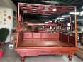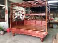 【修復工程】 1.板架屜木板蟲蛀換新 2.紅眠床邊片直柱木頭補平 3.紅眠床後腳蟲蛀換新 4.紅眠床前腳蟲柱補平 5.前腳配飾補齊