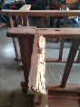 【修復前狀況】 1.板架屜木板蟲蛀嚴重 2.紅眠床邊片直柱木頭腐壞 3.紅眠床後腳蟲蛀腐壞 4.紅眠床前腳蟲柱 5.前腳配飾短缺
