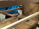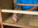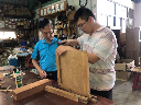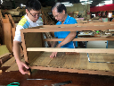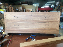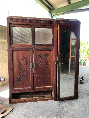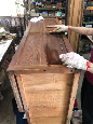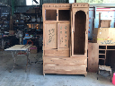 【修復工程】 1.衣櫥整座重新拆開重組 2.衣櫥下座木條蟲蛀嚴重換新 3.衣櫥下座抽屜配底板短缺補齊、重新組合 4.衣櫥下座腳座板短缺,重新手工刨出線條 5.衣櫥下座抽屜重新組合 6.衣櫥上座門片壓條重新製作加裝 7.衣櫥上座抽屜重新組合