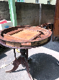 【修復前狀況】 1.圓桌「鱉唇」脫落 2.圓桌桌裙短缺 3.圓桌中心圓柱損壞 4.圓桌底盤蟲柱嚴重
