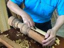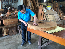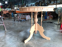 【修復工程】 1.圓桌「鱉唇」手工具刨平 2.圓桌桌裙手工具刨出線條、補全 3.圓桌中心圓柱手工具刨補齊 4.圓桌底盤換新